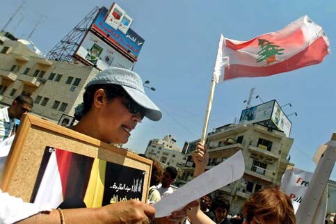 A Palestinian woman demonstrating against the attack on Lebanon in the center of the West Bank city of Ramallah, July 29, 2006. (MaanImages/Mushir Abdelrahman)