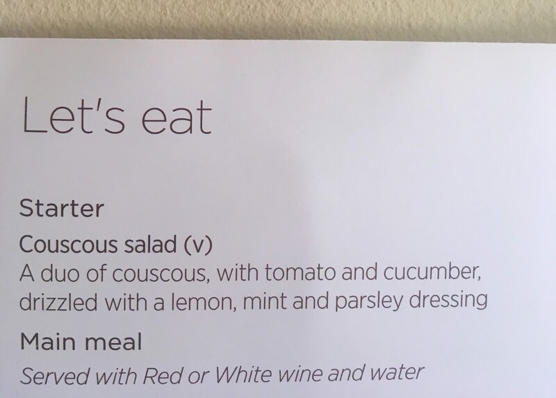 The Virgin Atlantic in-flight menu with “Palestinian” omitted from the description.