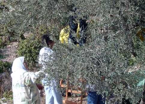 Participants picked olives in Nahhalin village, with the farmer and his mother. (JAI)