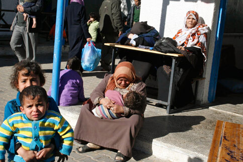 Palestinians take refuge in a UNRWA school in Rafah after being forced to flee their homes in the southern Gaza Strip, 6 January 2009. (Hatem Omar/MaanImages)