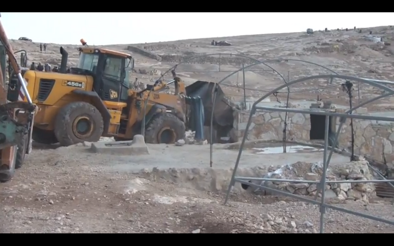 Video screenshot shows JCB equipment being used to demolish Palestinian property in occupied Umm Fagarah on 24 November.