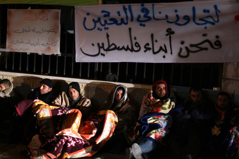 Palestinian teachers and graduates who were barred from employment by the Ministry of Education stage a sit-in outside the Council of Ministers in the West Bank city of Ramallah, 10 December.