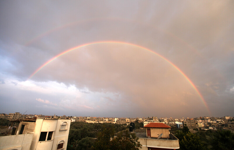 A rainbow is seen over Gaza City after a rainy day, 13 December.