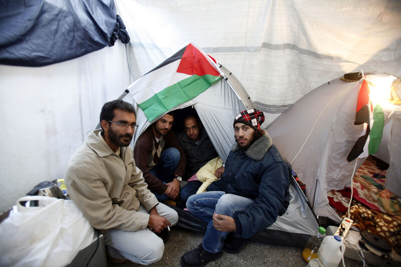 Palestinians stage a hunger strike sit-in in Jerusalem in solidarity with hunger-striking Palestinians in Israeli prison who are demanding their release from detention without trial, 25 December.