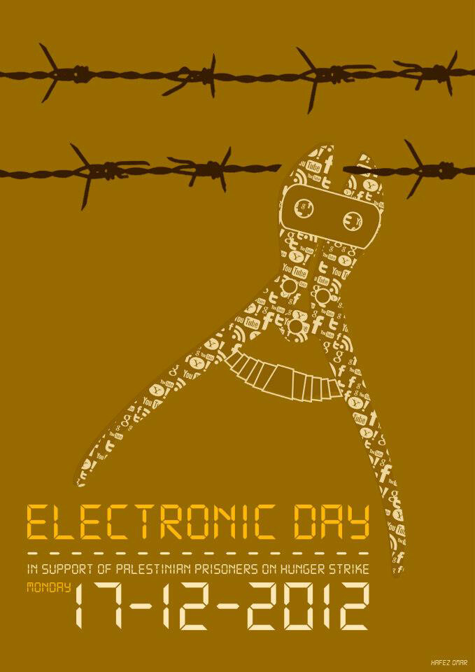 Arabic-language poster translates to “Hail The Heroes of the Electronic Resistance.”