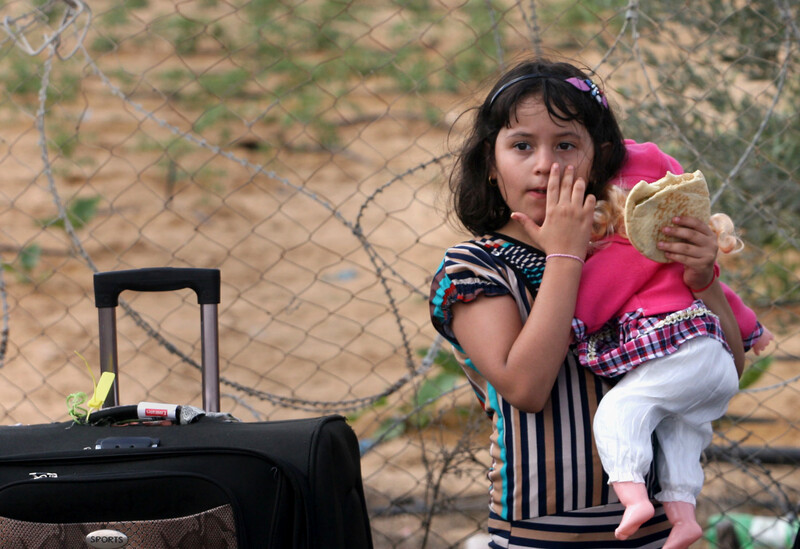 A Palestinian girl waits to cross into Egypt from the Gaza Strip, at the Rafah crossing, on 24 August 2013.