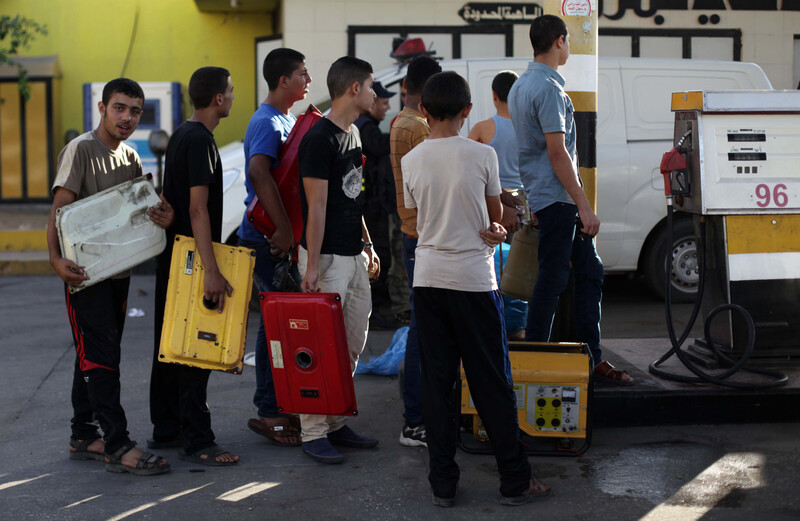Palestinians wait at a gas station in Gaza City on 1 September 2013, as tightening blockade has worsened fuel crisis.