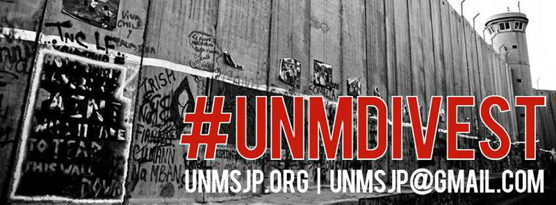 We, Students for Justice in Palestine, along with Students Organizing Actions for Peace, Movimiento Estudiantil Chicano de Aztlan, UNM Dream Team, Men of Color Alliance, Men of Color Initiative, Fair Trade Initiative, Muslim Student Association, and UNM Arabic Club are asking our University to respect human rights and to be on the right side of history. Our University has fully divested from South Africa apartheid in the past and it is time we put pressure on our University to continue to divest from corporations who are complicit in the oppression of people.