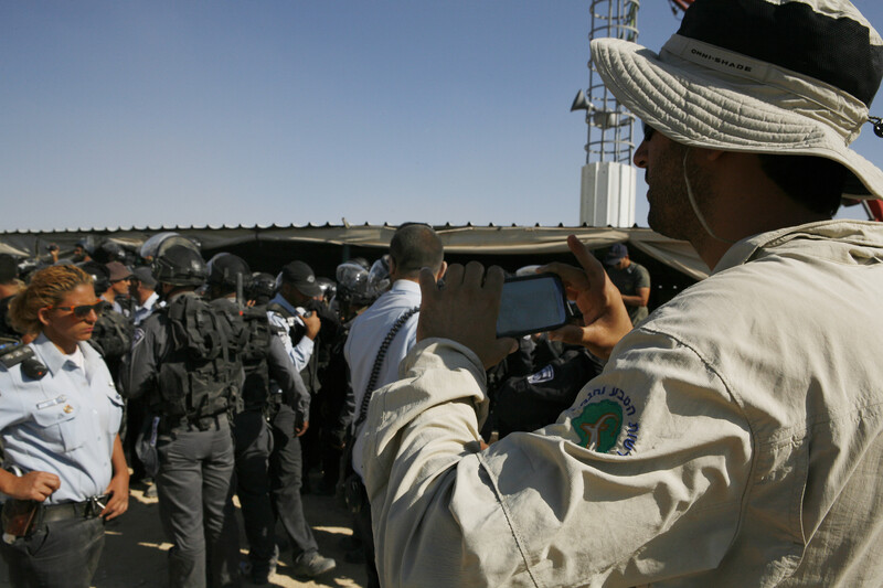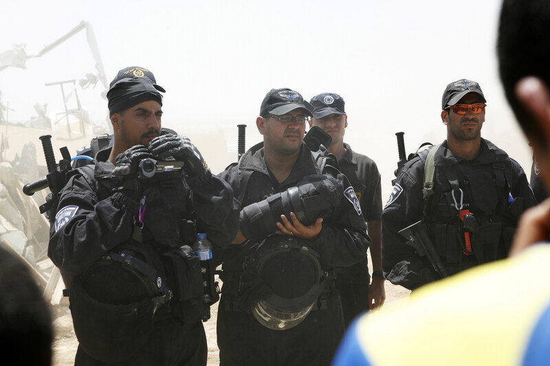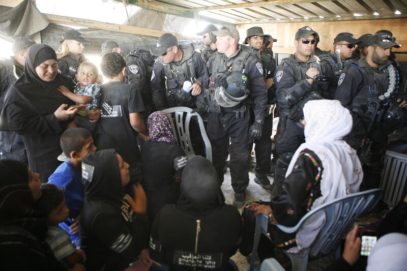 Villagers were rounded up inside the makeshift mosque as soon as state authorities entered al-Araqib in the morning. Police forces surrounded the mosque throughout demolition operations.