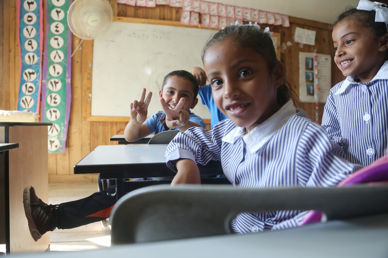 Children in the Palestinian Bedouin community of Khan al-Ahmar, near the occupied West Bank city of Jericho, attend their first day of school in August 2017. US Senators are urging Israel not to demolish the village.