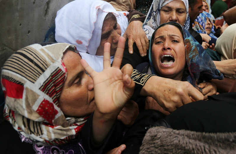 Relatives of Hamdan Abu Amsha mourn at his funeral in Beit Hanoun, northern Gaza, on 31 March, a day after he was killed by Israeli fire near the Gaza-Israel boundary.