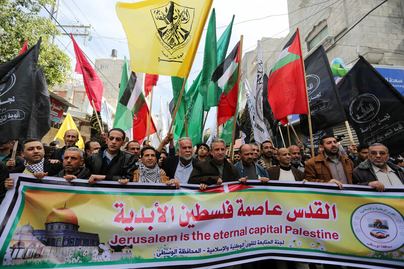 Palestinians protest against US President Donald Trump’s recognition of Jerusalem as the capital of Israel, Maghazi refugee camp, central Gaza Strip, 2 March.