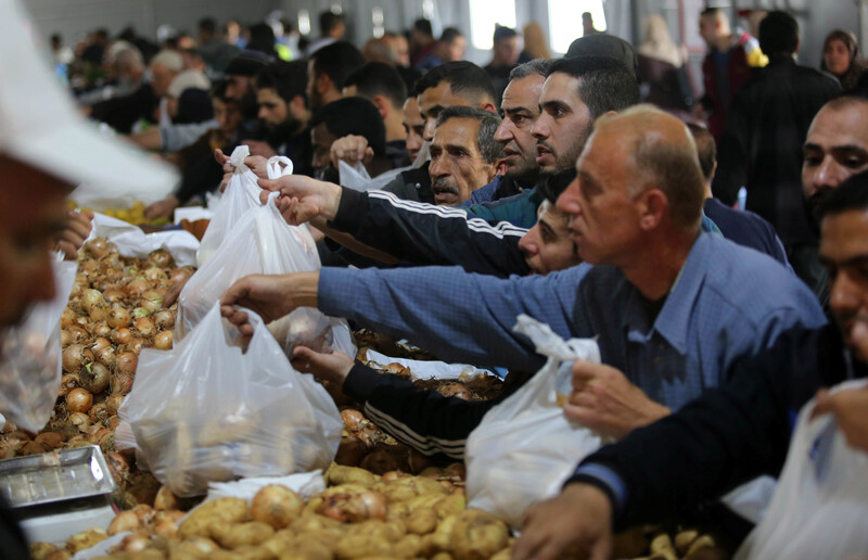 Palestinians shop at a central market in Gaza City financed by the government of Qatar, 8 March.
