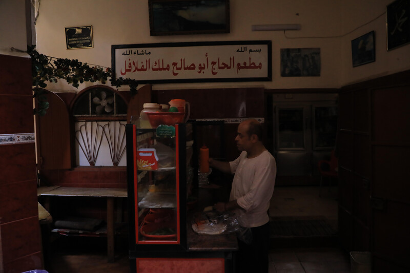 Saleh Wardeh has relied on dim sunlight while working in his falafel restaurant.