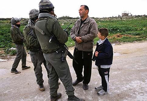 Israeli soldiers stop a Palestinian father and son in “Checkpoint” (Image: Efrat Shalem)