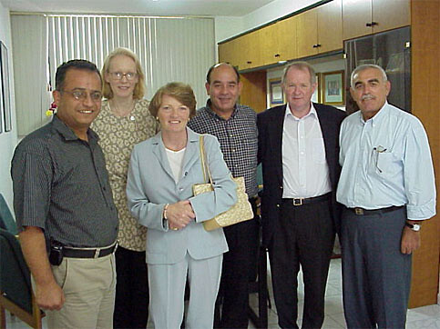 Second from right, Professor John Dugard, UN Special Rapporteur for the OPTs and his colleagues with Raji Sourani, Director of PCHR, and other members of the Board of Administration, following a meeting in PCHR offices on 21 June 2004. (PCHR)