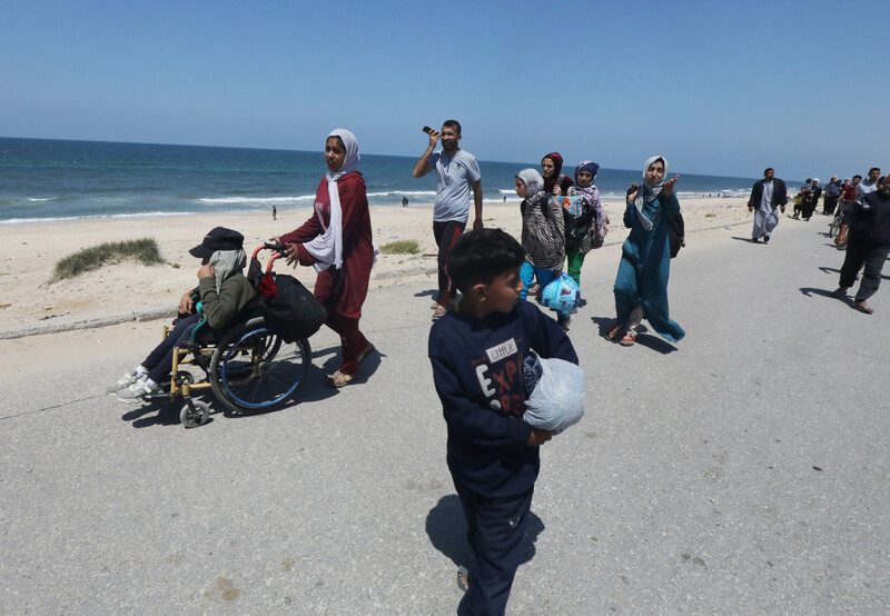 Hundreds of thousands of people in Gaza have been displaced repeatedly over the past 11 months, here on 14 April.