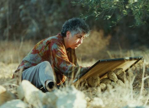 Palestinian artist Samia Halaby paints outside Salfit. Halaby’s work is featured in “Three Arab Painters in New York.”