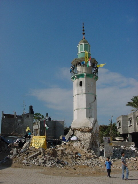 The mosque in the center of Beit Hanoun that was destroyed in a calculated and mockingly cruel humiliating manner, leaving only its minaret standing. (Dr. Bill Dienst)