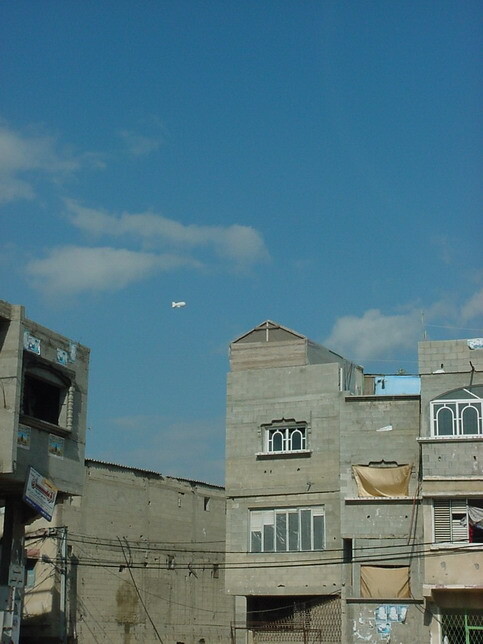The Israeli Blimp with spy camera located over the border at Eretz Crossing keeps a close watch over the people of Beit Hanoun. (Dr. Bill Dienst)