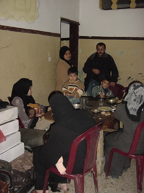 Majdi with surviving members of his extended family having a meal inside the ruins of their devastated apartment. (Dr. Bill Dienst)