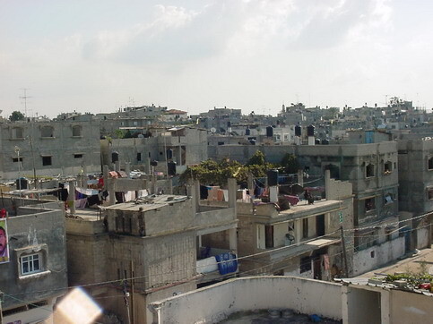 View to the Northwest from the rooftop. The smokestack from the coal fired power plant south of the Israeli town of Ashkalon and the Apartheid wall around Gaza can be seen on the horizon. (Dr. Bill Dienst)