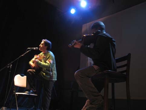 Hassan el-Hadi performs on the Oud proceeding the film screening on Hezbollah in Montreal. Hassan el-Hadi is an accomplished composer, songwriter and singer originally from Marrakesh Morocco. (Photo: Stefan Christoff)