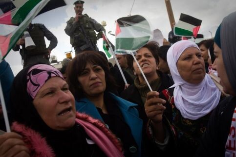 Palestinian women near Ramallah protest the Israeli occupation on Women’s Day, 8 March. (Oren Ziv/ActiveStills)