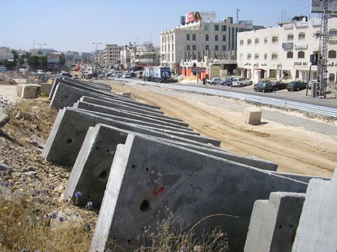 As the International Court of Justice will render its advisory opinion in the case concerning the legal consequences of the construction of the Wall in the occupied Palestinian territory on July 9, 2004, EI’s Arjan El Fassed visited ar-Ram where Israel continues the construction of the Wall. This week, Knesset member, Azmi Bishara, went on hunger strike in protest against the wall. Dozens of protesters joined the lawmaker in a tent at ar-Ram, which is located between Kalandia and Beit Hanina. Despite a ruling of the Israeli High Court, construction of the wall in ar-Ram continues.