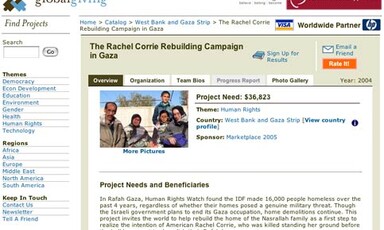 Rachel Corrie Rebuilding Campaign in Gaza nominated in GlobalGiving.com competition