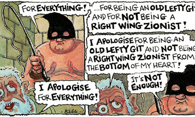 Steve Bell strip shows Labour punishing former leader for not being Zionist. Read more about Guardian censors Jeremy Corbyn cartoon