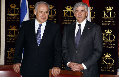 Canada’s Minister of Foreign Affairs Lawrence Cannon (right) meets with Israeli Prime Minister Benjamin Netanyahu in March 2009. (AFP)