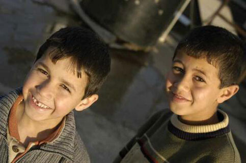 Above: Two young brothers living in the home that Tom Hurndall had chosen to protect, in a photo taken by Tom on 10 April 2003. (Tom Hurndall/ISM)