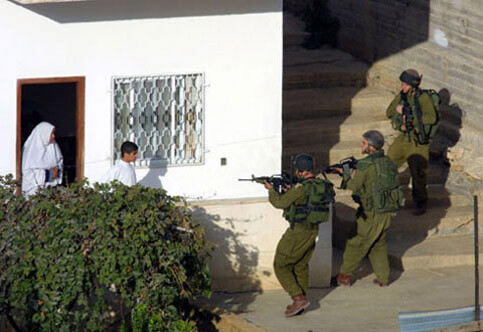 Israeli occupation soldiers conduct house to house searches in the Bethlehem area, November 2002. (Musa Al-Shaer)