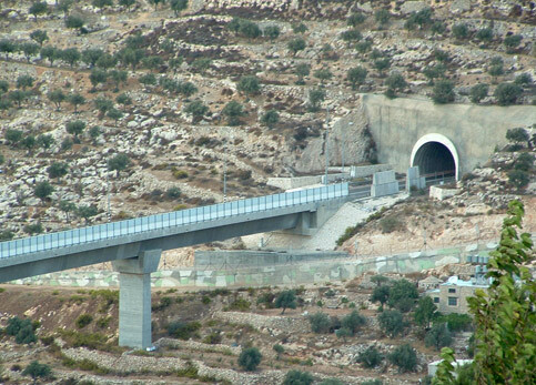 View of the highway from the Gush Etzion settlement block of towards Jerusalem, which only cars with Israeli plates are allowed to use, as seen from the window of Dr. Edmun Shehadehs office