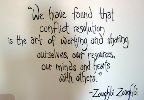 Today we take a group taxi across the Wall to Bethlehem in the south. We meet with Zoughbi Zoughbi and his American wife Elaine. Mr. Zoughbi is director of Wi’am, a local empowerment program in Bethlehem which uses techniques popularized by folks like Mahatma Gandhi and Martin Luther King — techniques of nonviolent active resistance, which help local people survive the pressures of occupation. Mr. Zoughbi is also a member of the Bethlehem city council.