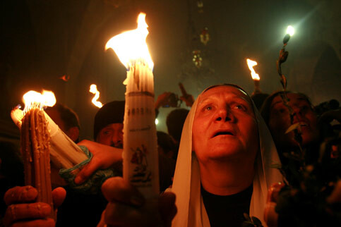 Christian believers in the Church of Holy Sepulcher during the Holy Fire ceremony in Old City of Jerusalem, 7 April 2007. (Anat Zakai/MaanImages)