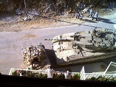Israeli tank positioned under the apartment building (Photo: Yacoub Alul)