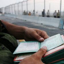 Israeli soldiers check Palestinian Muslim worshippers trying to enter the Ibrahimi Mosque in Hebron during the first Friday of the month of Ramadan, 5 September 2008. (Mamoun Wazwaz/MaanImages)